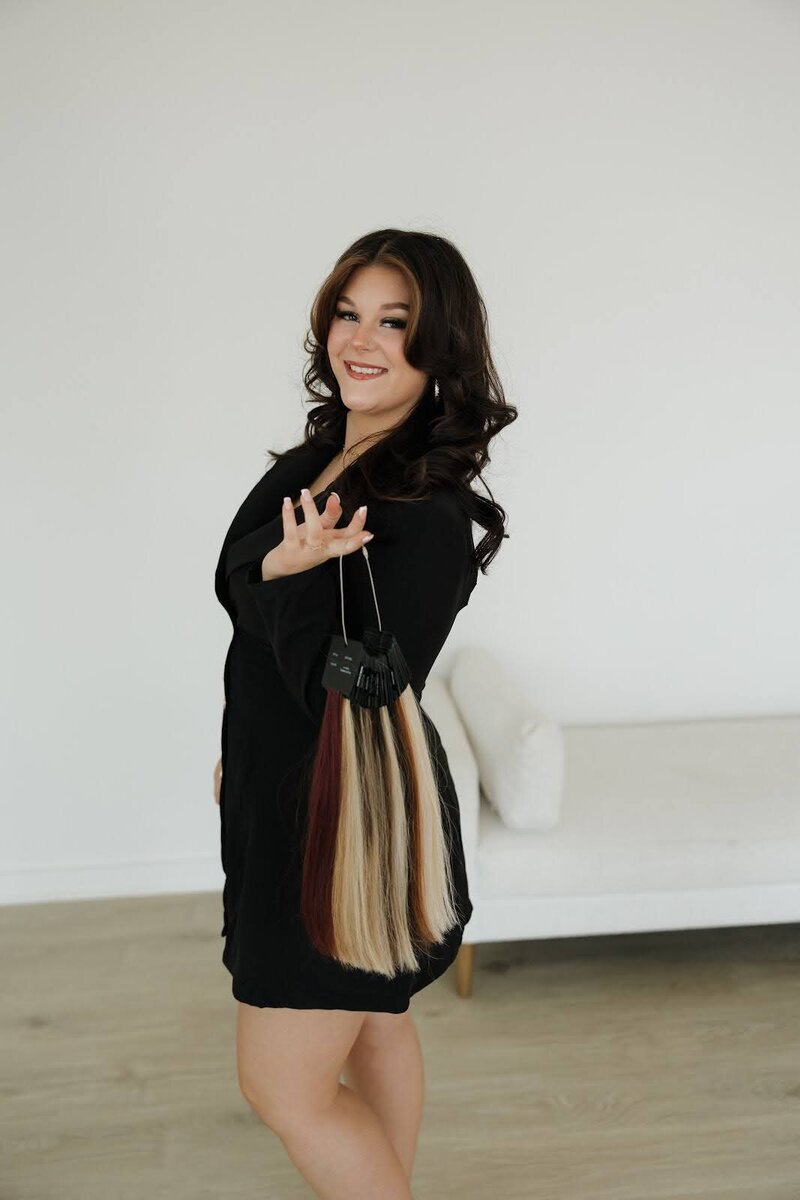 Known for her signature balayage and seamless hand-tied extensions, Jordan blends artistry with intention to create hair that feels effortless, modern, and uniquely you.